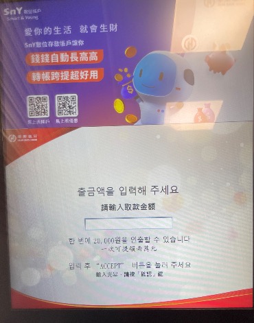 • ATM에서 한글 지원되는 것도 많아 편리하게 이용가능하다. 없으면 영어 메뉴로 진행
