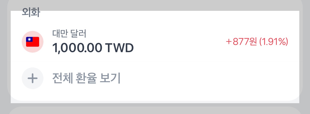 토스뱅크에 들어가서 외화통장을 개설하면 위의 화면처럼 나온다. 대만에 살고 있다면 환률을 지켜보면서 내렸갔다고 생각될 때 조금조금씩 환전해 놓으면 소소한 이익을 볼수 있다.✌️