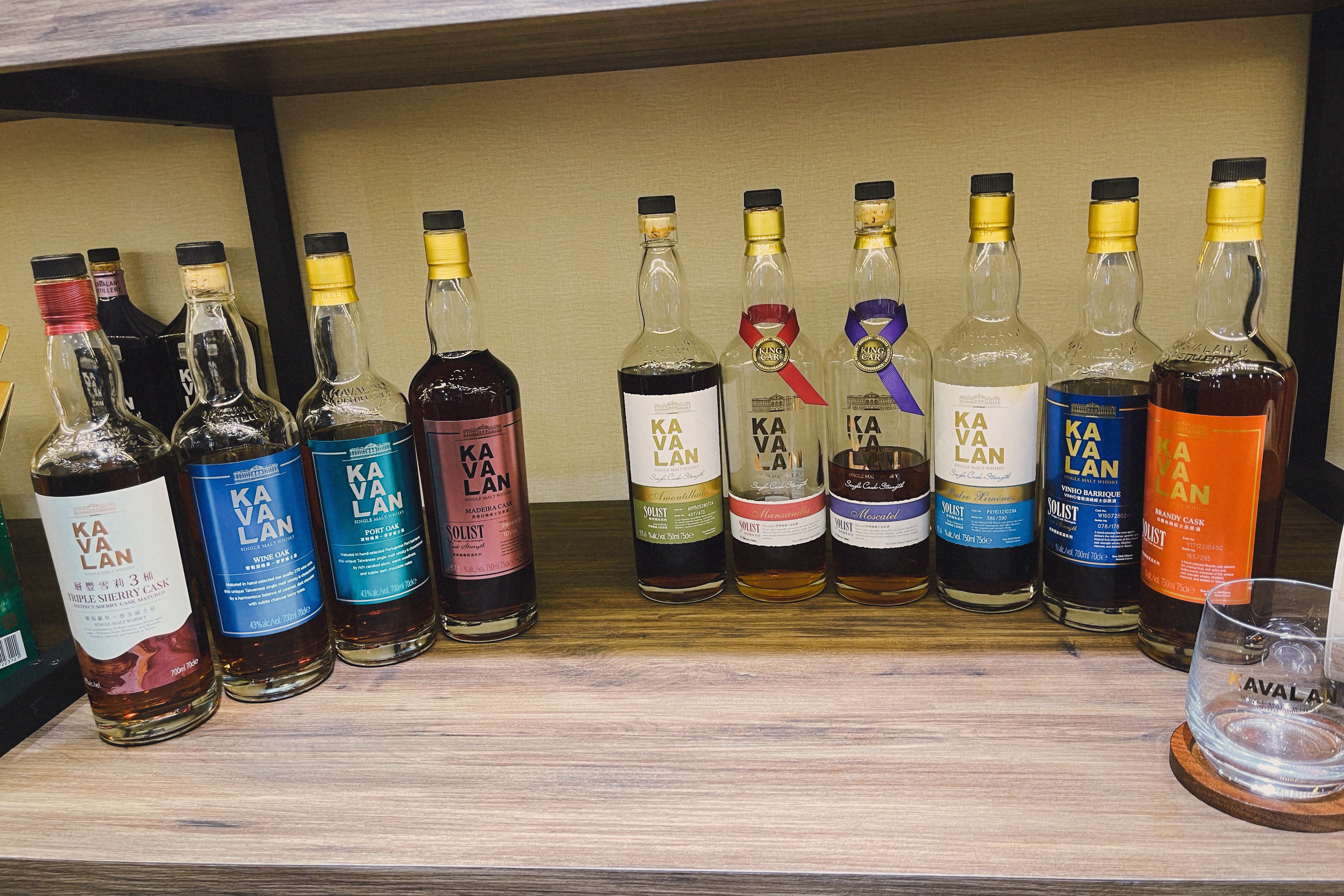 카발란(Kavalan)은 대만의 프리미엄 위스키 브랜드로, 2005년에 설립된 King Car Group에 의해 출시되었다. 대만 북동부 이란(Yilan) 지역에 위치한 증류소에서 생산되며, 독특한 기후(고온다습) 덕분에 숙성 과정이 빠르게 진행되는 것이 특징이다.